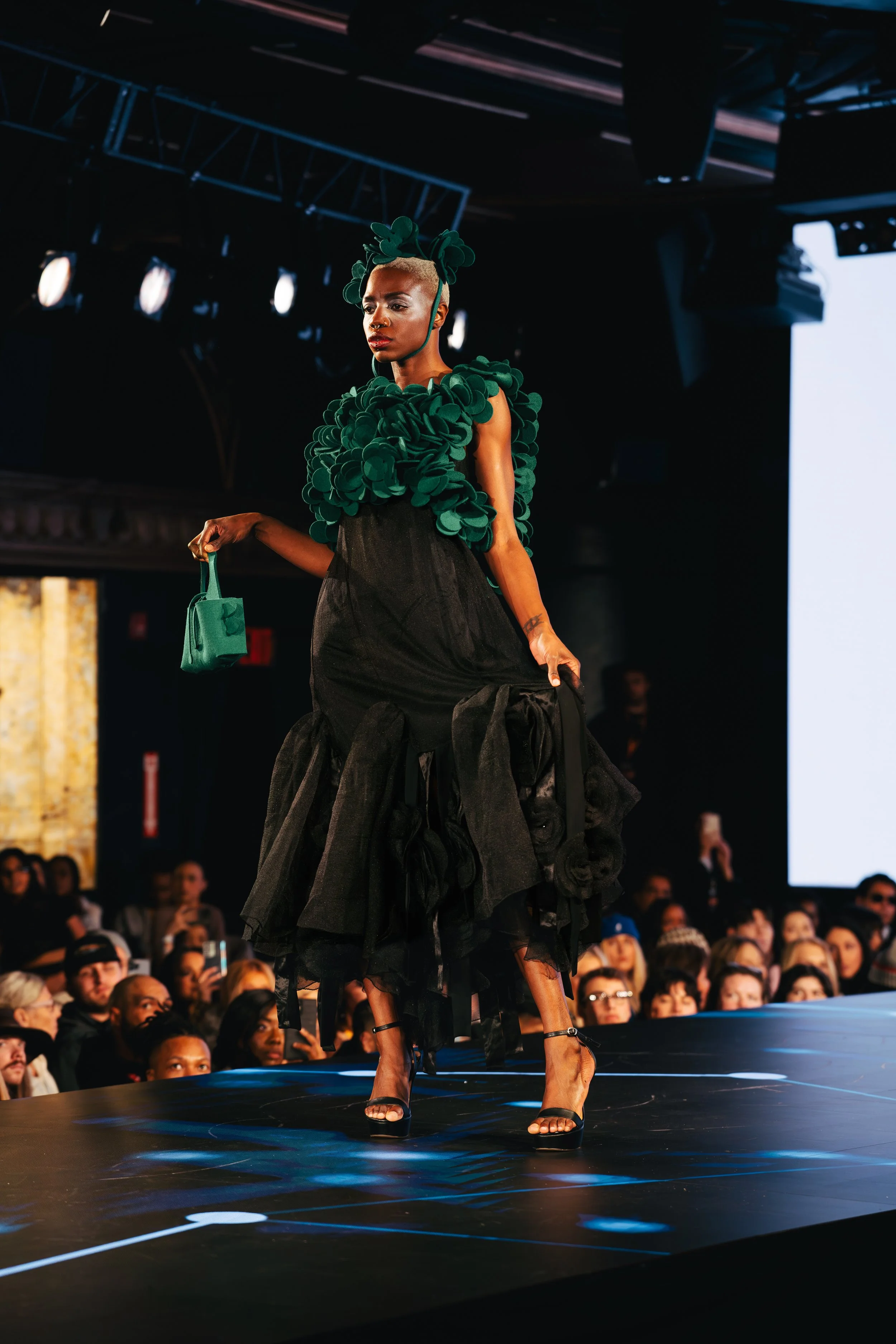 The epitome of elegance, Royal Melanin presented stunning couture gowns with intricate details, rich fabrics, and sophisticated silhouettes. This collection radiated luxury and grace, making it one of the most breathtaking of the evening. The luxurious gowns and regal silhouettes captivated the audience, proving that elegance will always have a place on the runway at NYFW.