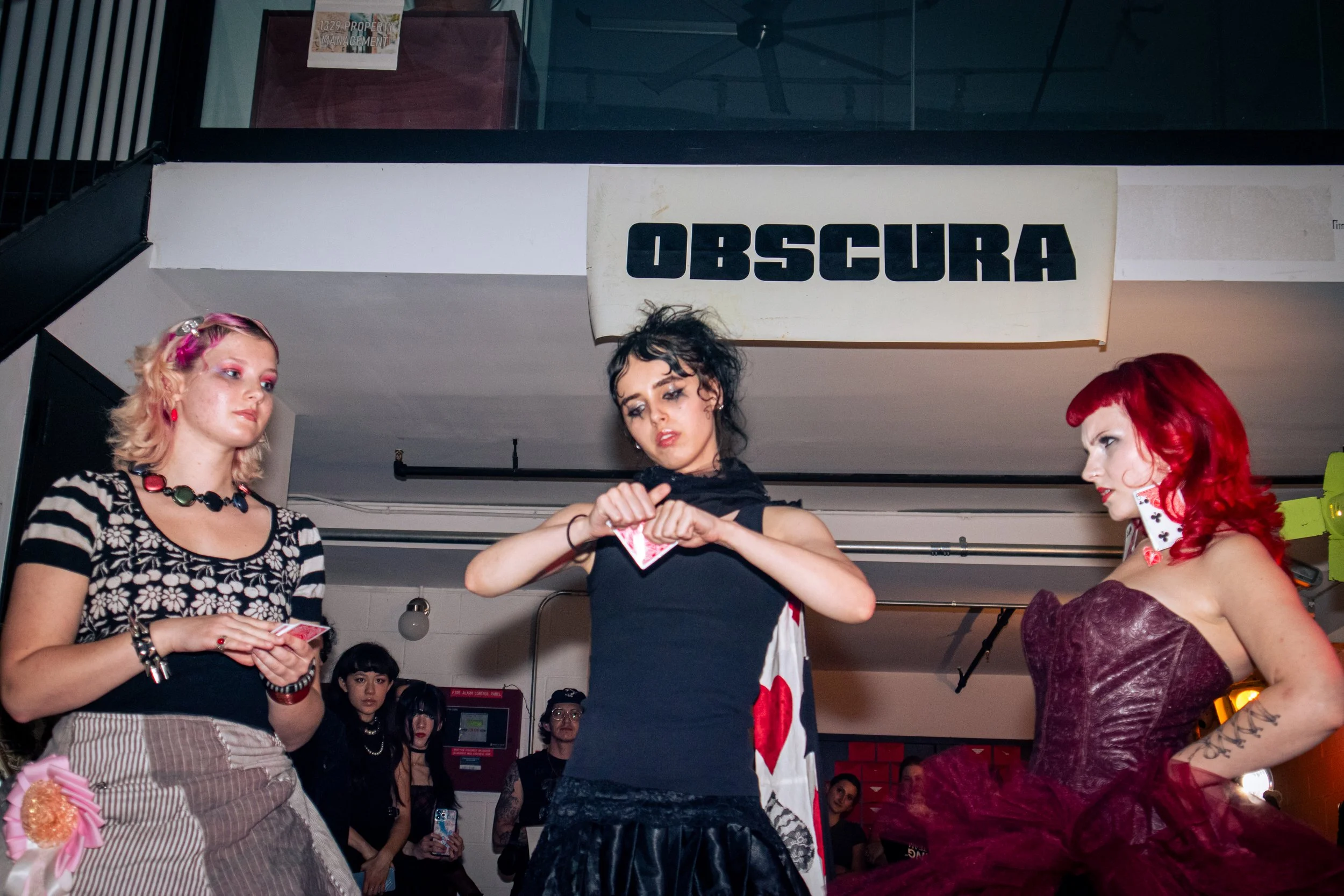 The models then walked throughout the space, posing amongst the exhibits, and handing cards to guests, including a raffle card to one lucky guest of the night, winning a custom one-of-one Obscura purse and T-shirt.