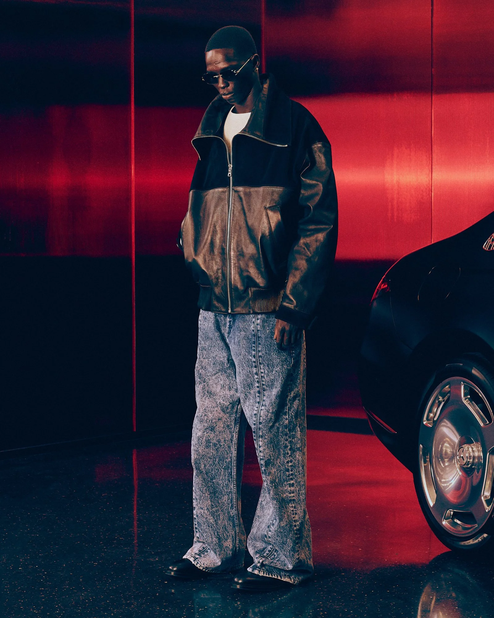 Following his NYFW debut in February, the London-born, US-based designer said this SS26 collection draws inspiration from the underworld of crime. Tailored pieces move through a darkened set, with films such as Park Hoon-jung's New World serving as key sources of inspiration. Velvet and leather mix with washed denim, linen pieces, and oversized collared shirts and jackets to create this collection. Our favorite pieces include an oversized beige trench coat layered over a classic white shirt and oversized tie, a racer jacket paired with fitted black trousers and oval shades, and a tailored navy suit with a white sheer shirt.